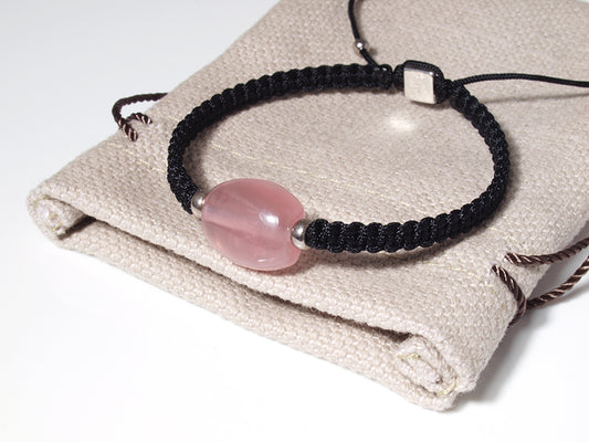 Edelsteinarmband (Schwarz) mit Rosenquarz
