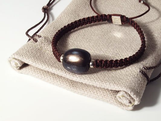 Edelsteinarmband (Braun) mit Mondstein (Schwarz)