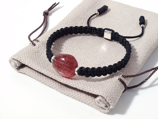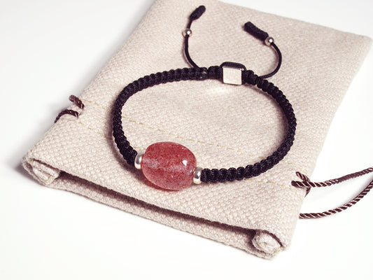 Edelsteinarmband (Schwarz) mit Erdbeerquarz